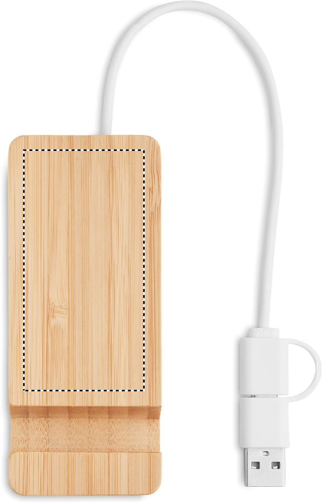 4 Ports USB-C/A-Hub im Gehäuse aus Bambus. Ausgang: 2 x Typ-A und 2 x Typ-C. Eingang: 2-in-1 Typ-C & Typ-A. Kabellänge: 20 cm.