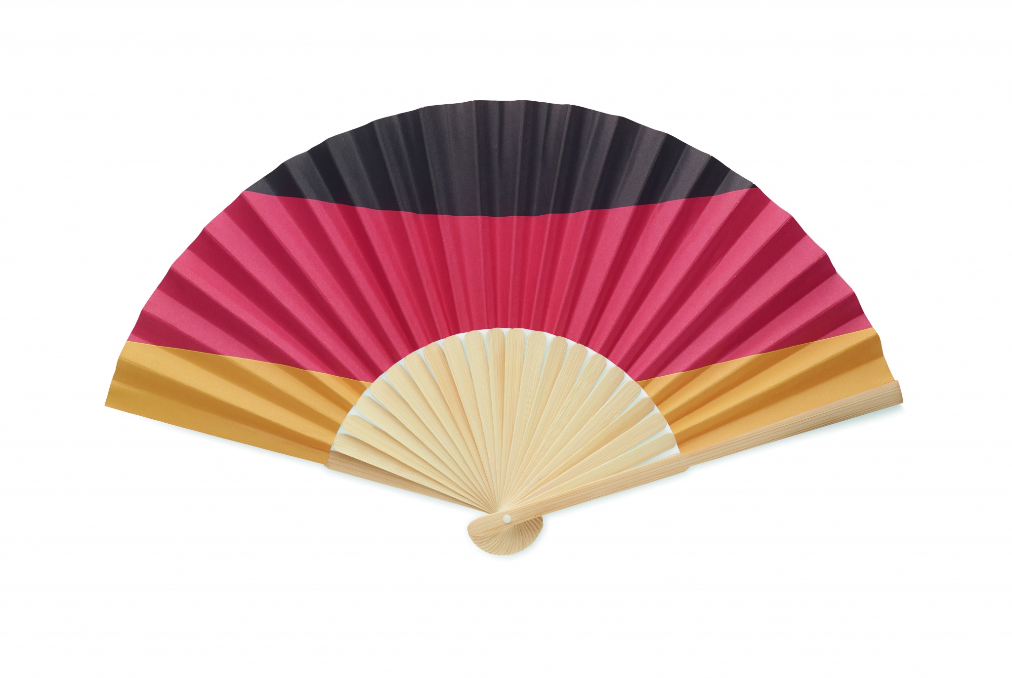 Fächer aus Bambus mit Papierbespannung. Erhältlich in verschiedenen Flaggen-Farben.