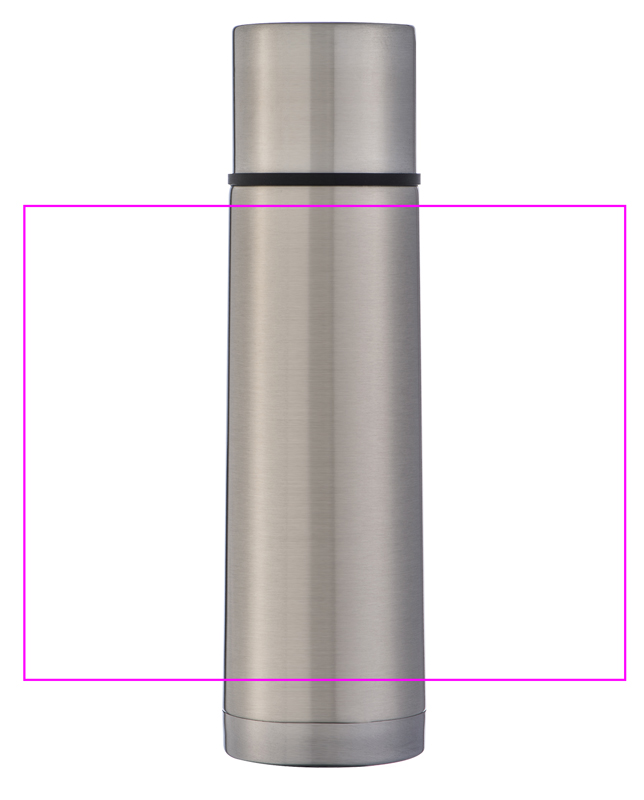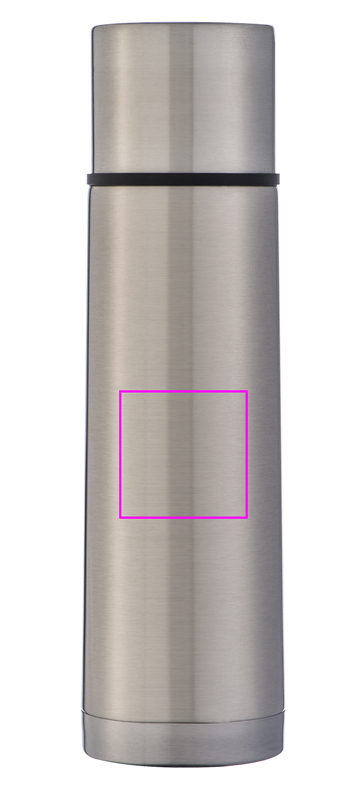 Edelstahl-Isolierflasche mit 500ml Füllvolumen und integriertem Becher im Deckel. Ihre Werbung wird eingraviert.