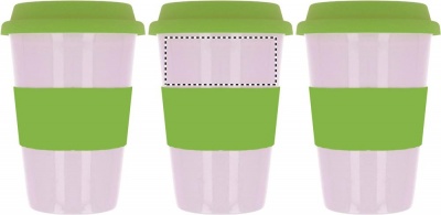 Einwandiger Keramikbecher mit Silikon-Deckel und einem Silikon-Griff . Füllmenge 400ml. Nur Keramik-Transferdruck ist spülmaschinengeeignet. Da Keramik die Hitze nach außen leiten kann, kann der Artikel heiß werden.