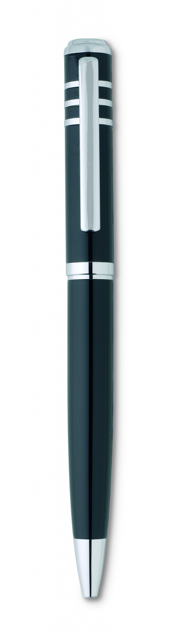 Drehkugelschreiber aus Metall in glänzendem Lack-Finish. Verpackt in einer Kartonbox. Schwarze Tinte.