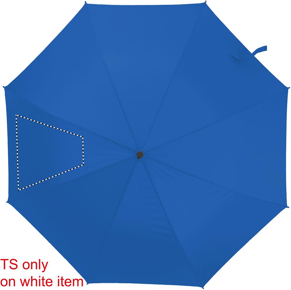 27'' Regenschirm aus 190T Pongee. Stock und Schienen aus schwarz überzogenem Metall, Spitzen aus schwarzem Kunststoff. Schwarzer EVA Griff. Automatische Öffnung, manuelle Schließung.