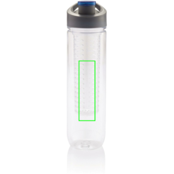 800ml Tritan Flasche mit Früchte-Aromafach. Bereichern Sie Ihr Wasser mit Vitaminen und einer Menge Geschmack durch das einfache Hinzufügen von frischen Früchten im Aromafach. Dieses Fach kann durch das Zusetzen von Eiswürfeln auch als Kühlfach verwendet werden. Nur Handwäsche.
