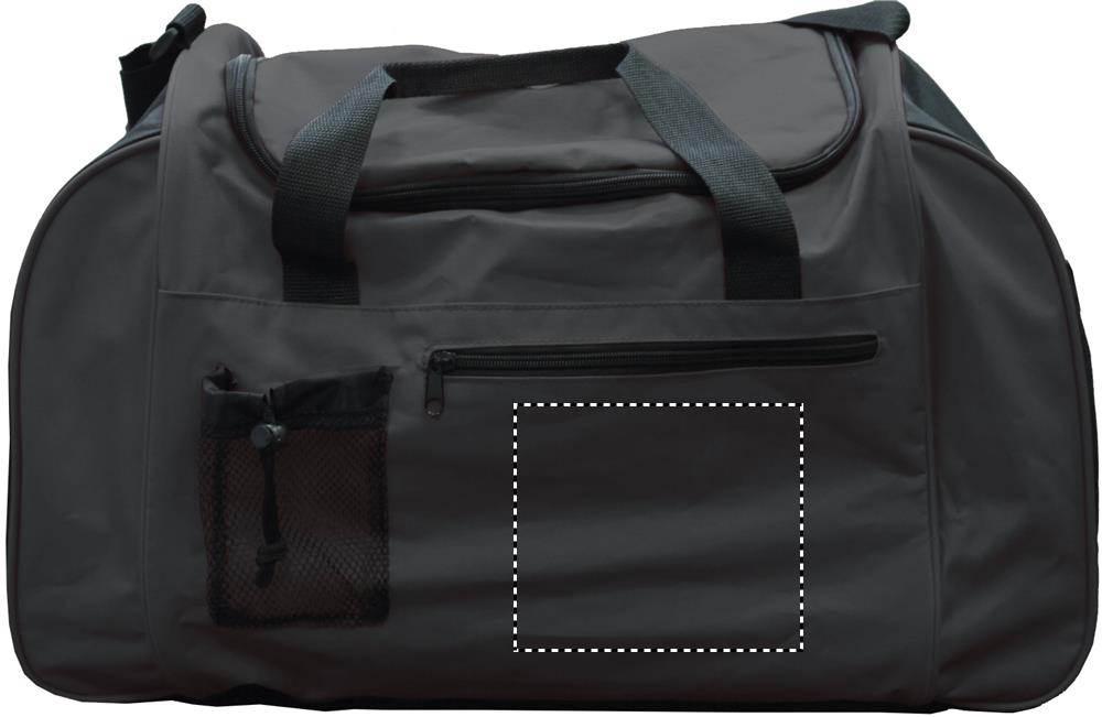 Sport or travelling bag in 600D polyester with front pocket and adjustable and detachable shoulder strap.