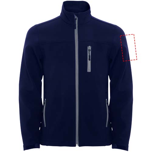 2-layer softshell. Inverted sealed effect zip with matching chin protector and zipper puller. Cut detail on chest. Three zip pockets with matching puller. Velcro fasteners in cuffs. Adjustable bottom hem with elastic drawcord and stoppers. 1000 mm water resistant. Wind-proof fabric. The model is 185 cm and is wearing size M.