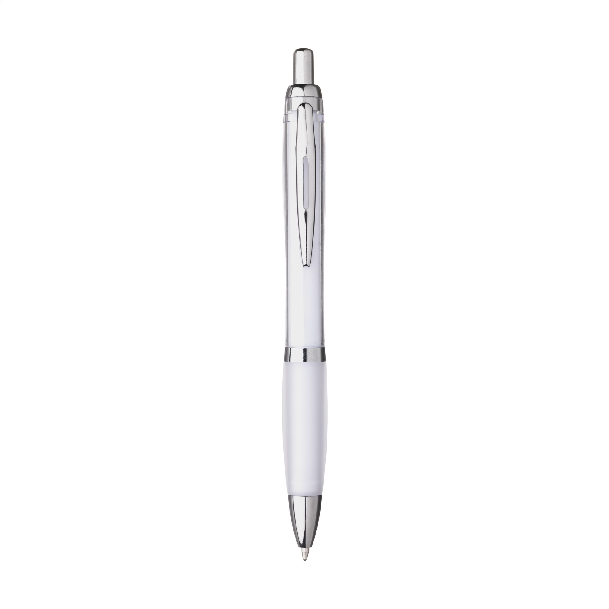 WoW! Blue ink ballpoint pen. The solid holder is made from recycled ABS. With push button, metal clip and silver coloured accents. GRS-certified. Total recycled material: 53%.