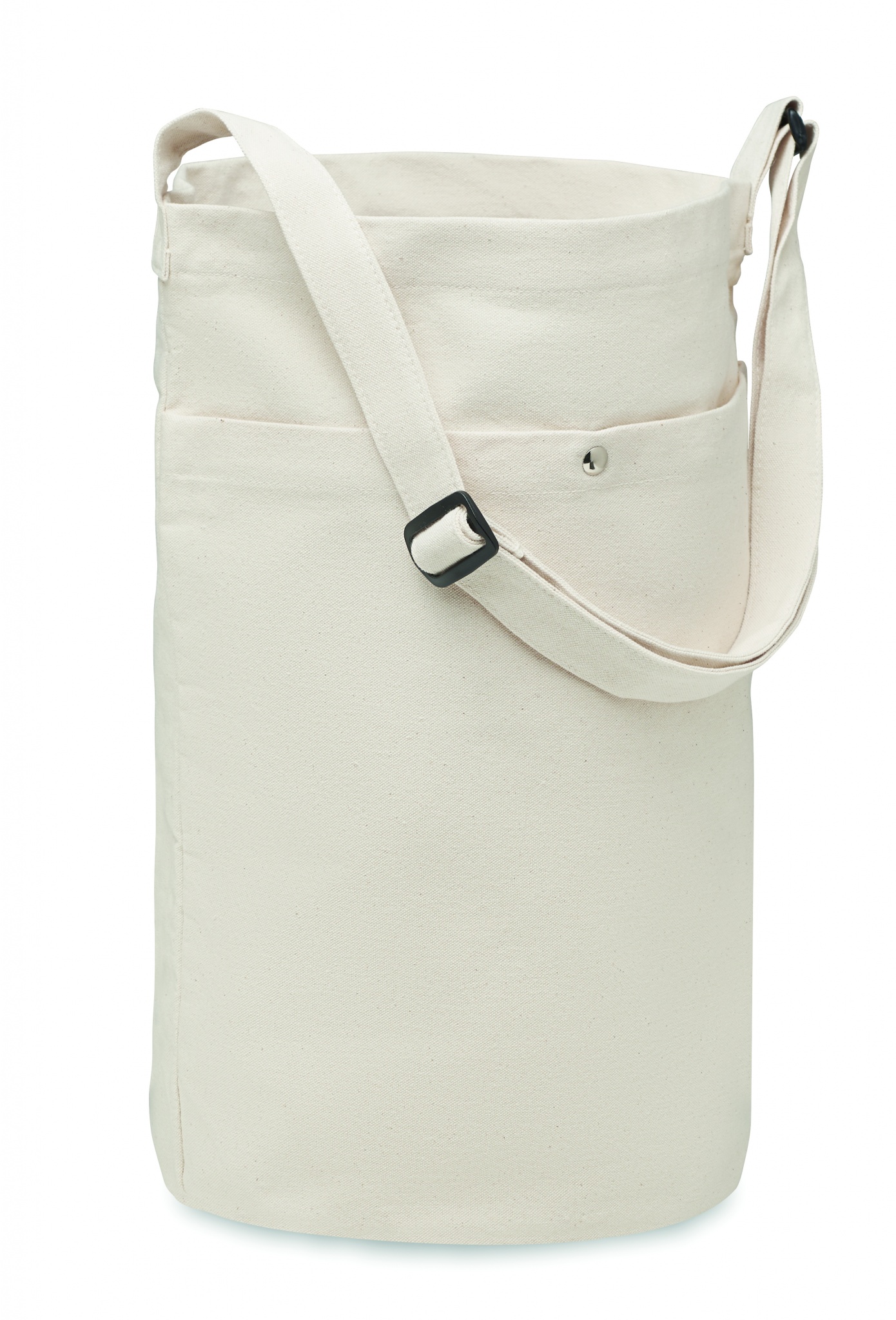Canvas bag with long adjustable cross shoulder strap and large front pocket with snap closure. Includes inner pocket. 270 gr/m².