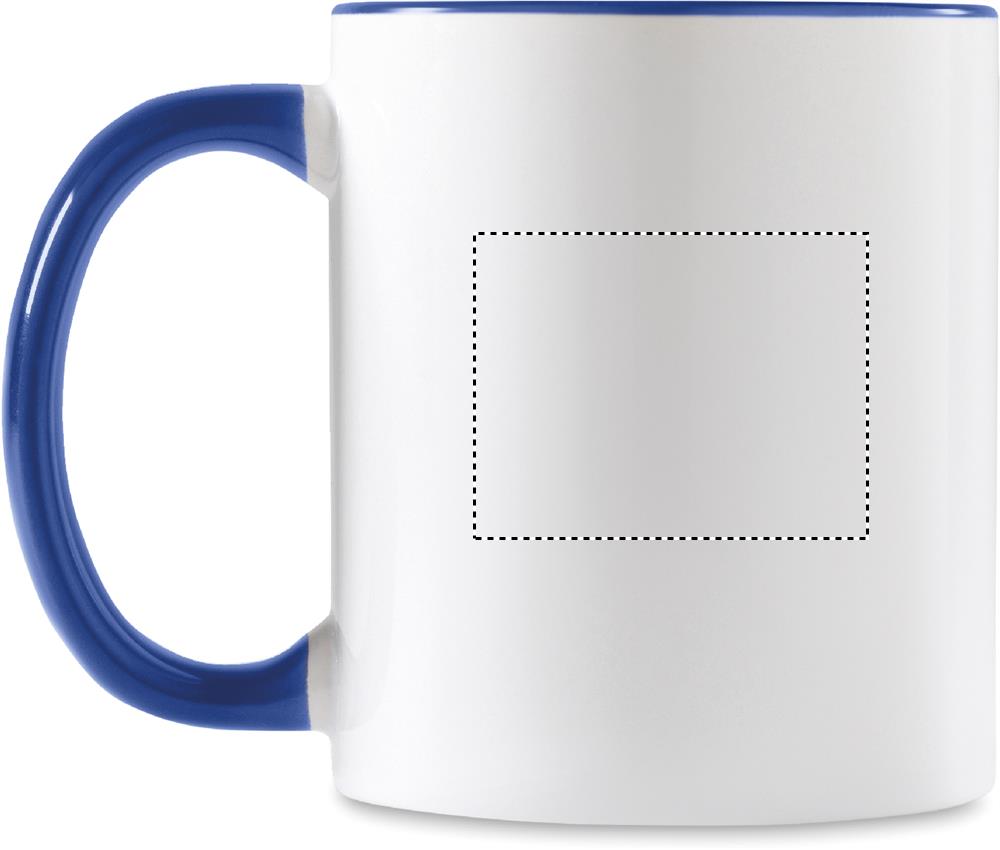 Ceramic mug of 300 ml capacity with special coating for sublimation with coloured handle and inside. Individual packing in white carton box.