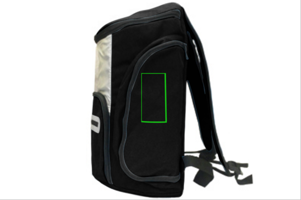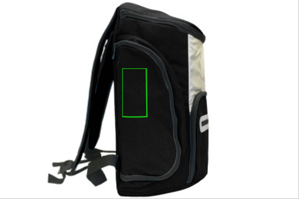 600D cooler backpack with silver lined insulation inside to keep all your food and beverages cold. On the front there’s an additional zipped pocket for storing your other belongings.