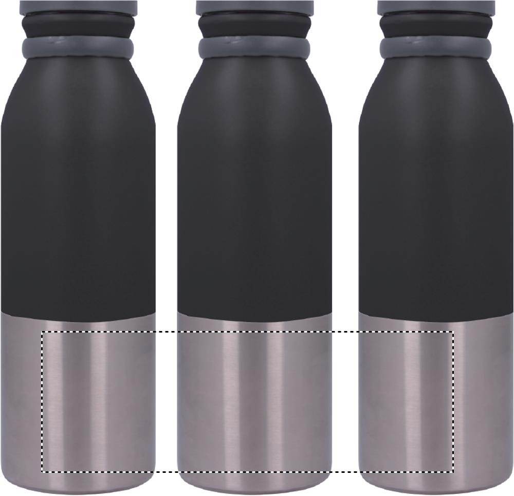 Double wall stainless steel powder coated flask with silicone grip for easy carry. Leak free. Capacity: 600 ml. Leak free.