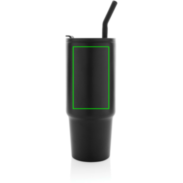 Experience the spacious yet conveniently portable embrace of our generously sized tumbler – not too big, not too small. Its comfort-grip handle and slim base make it a perfect fit for most cup holders, ensuring you stay refreshed whether you're enduring a long day of meetings, conquering a rowing class, or embarking on a trip out of town. Crafted from durable recycled stainless steel, this 900 ml. tumbler rises to the hydration challenge. This double-walled, vacuum-insulated tumbler comes complete with a spill secure lid, recycled steel straw, and a silicone straw tip. The screw-on lid boasts a dual function, offering a convenient drinking spout or the option to use a straw. We recommend handwash. RCS certification ensures a completely certified supply chain of the recycled materials. Total recycled content: 70% based on total item weight. BPA free.