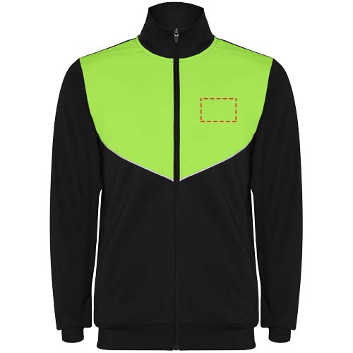 Tracksuit in lightweight and elastic fabric. Jacket with contrasting colour and sewing trims on chest. High collar with contrasting seams. Central front zip. Side pockets. 2x2 ribbed cuffs and waist. Trousers with elastic waistband and drawstring. Contrasting side piece with sewing trim. Zipped hem.