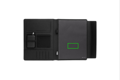 Logotrade promotional product image of: Fiko 5W wireless charging portfolio A4 with powerbank