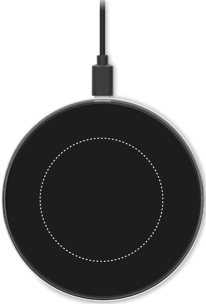 Aluminium Wireless charger 10W with glass on top. Connect device to your computer, lay down smartphone on it and let it charge. Blue light when charging. Output: DC 9V/1.1A. Compatible latest androids, iPhone® 8, X and newer.