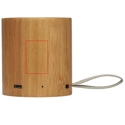 Bamboo Bluetooth® speaker with a 3W output and excellent sound quality. The built-in 500 mAh battery allows up to 3 hours of usage at maximum volume on a single charge. Bluetooth® 5.0 working range is up to 10 meters. Packaged in a gift box and delivered with an instruction manual (both made of sustainable material). Micro-USB charging cable is included. Since bamboo is a natural product, there may be slight variations in colour and size per item, which may affect the final decoration outcome.