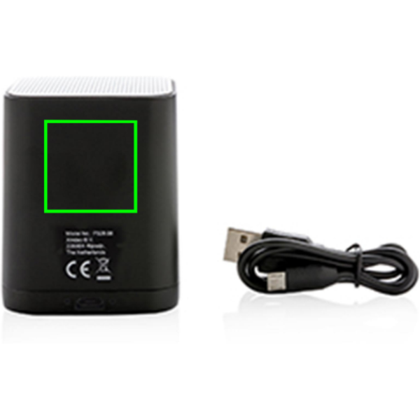 Wireless 3W speaker that can be customised with your logo on the ABS surface. The logo will light up for optimal exposure of your brand. The speaker uses BT 4.2 for smooth connection up to 10 metres. The built-in 400 mAh battery allows you to play music for up to 4 hours on 1 charge and re-charge is done in 1 hour.