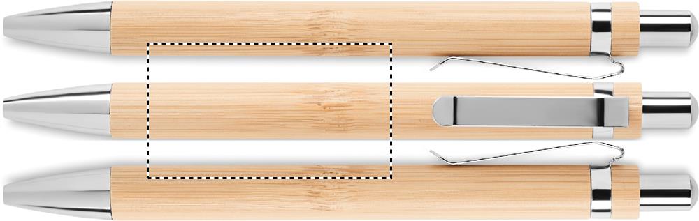 Long lasting push button inkless pen with bamboo barrel and shiny chrome fittings. The pen writes with the graphite tip. Bamboo is a natural product, there may be slight variations in colour and size per item, which can affect the final decoration outcome.