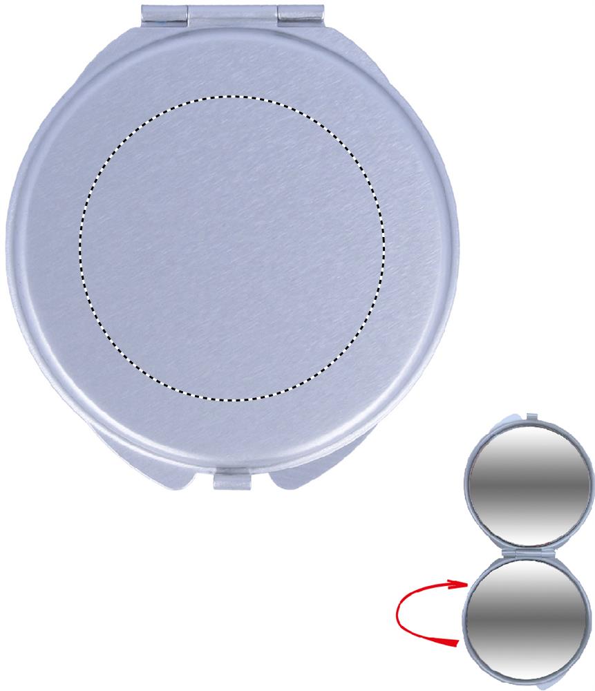 Aluminium make-up mirror with standard and magnifying mirrors in velvet case.
