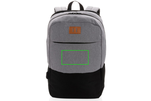 Carry all of your gear for work or travel inside this sleek laptop backpack. The laptop backpack is made from durable fabric and features a sporty, urban inspired design. This backpack includes a fully padded 15.6" laptop compartment and a front pocket to hold all your everyday accessories. The integrated USB port ensures that you are able to charge your phone while on the go. PVC free.