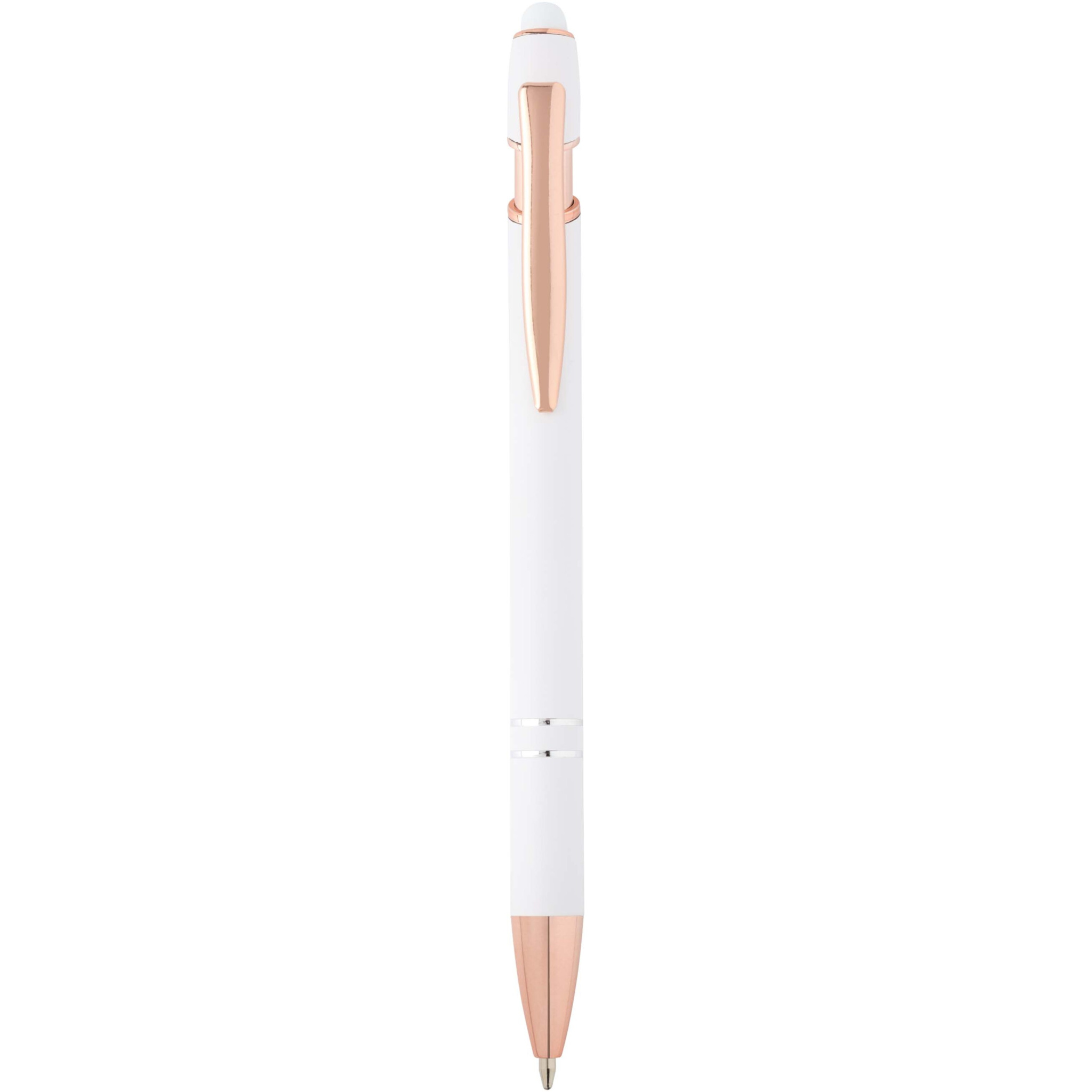 The Nanna ballpoint pen with rose gold finish has a barrel made of recycled aluminium with a touch stylus made of silicone. Recycled aluminium reduces the amount of waste in landfills and helps to conserve natural resources aiming to reduce greenhouse emissions. Ink colour: Black. Writing length: 800 metres. Nib size: 1.0 mm.