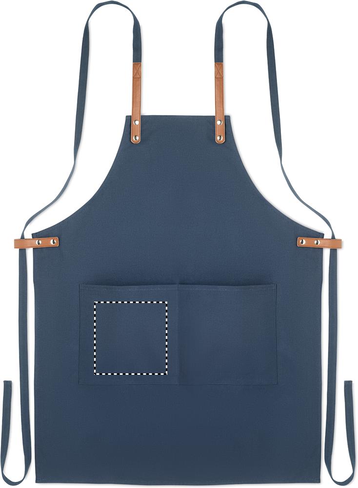 Adjustable kitchen apron with 2 front pockets in 340 gr/m² organic cotton/canvas. Presented in individual box.