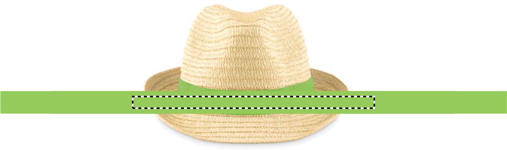 Paper straw hat with coloured polyester band. For unprinted orders the band will be supplied unattached to the items.