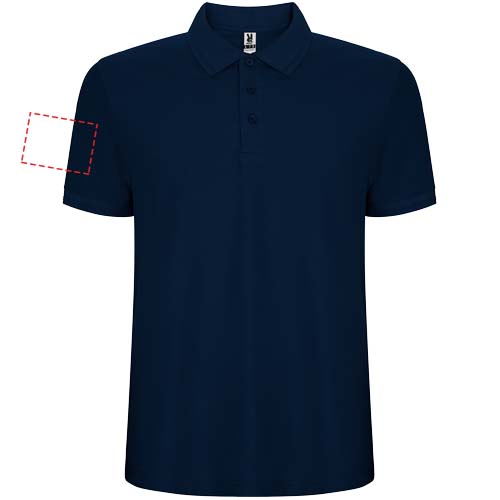 Short-sleeve polo shirt. Collar and sleeves edging in 1x1 ribbed fabric with detail. 3-button placket. Reinforced covered seams in collar. Side slits and optional pocket. Removable label. Anti-pilling treatment.
