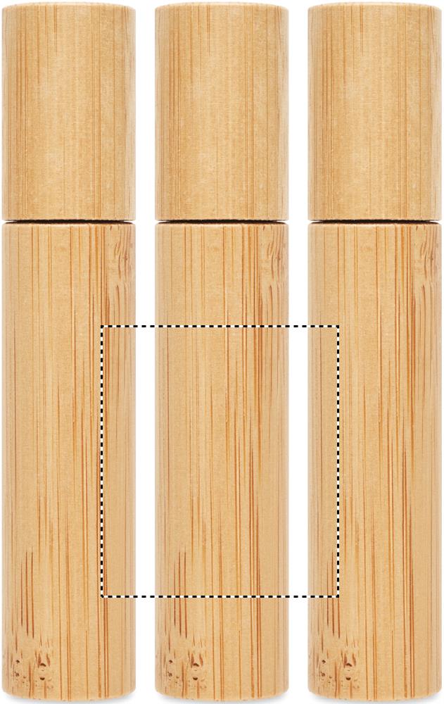 Mini perfume refillable atomiser bottle with bamboo casing. Capacity: 10 ml. Bamboo is a natural product, there may be slight variations in colour and size per item, which can affect the final decoration outcome.