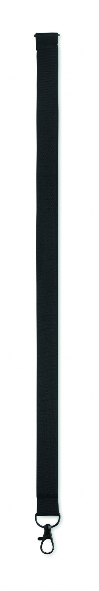 Lanyard in polyester with phone cord holder and safety buckle. 2 cm.