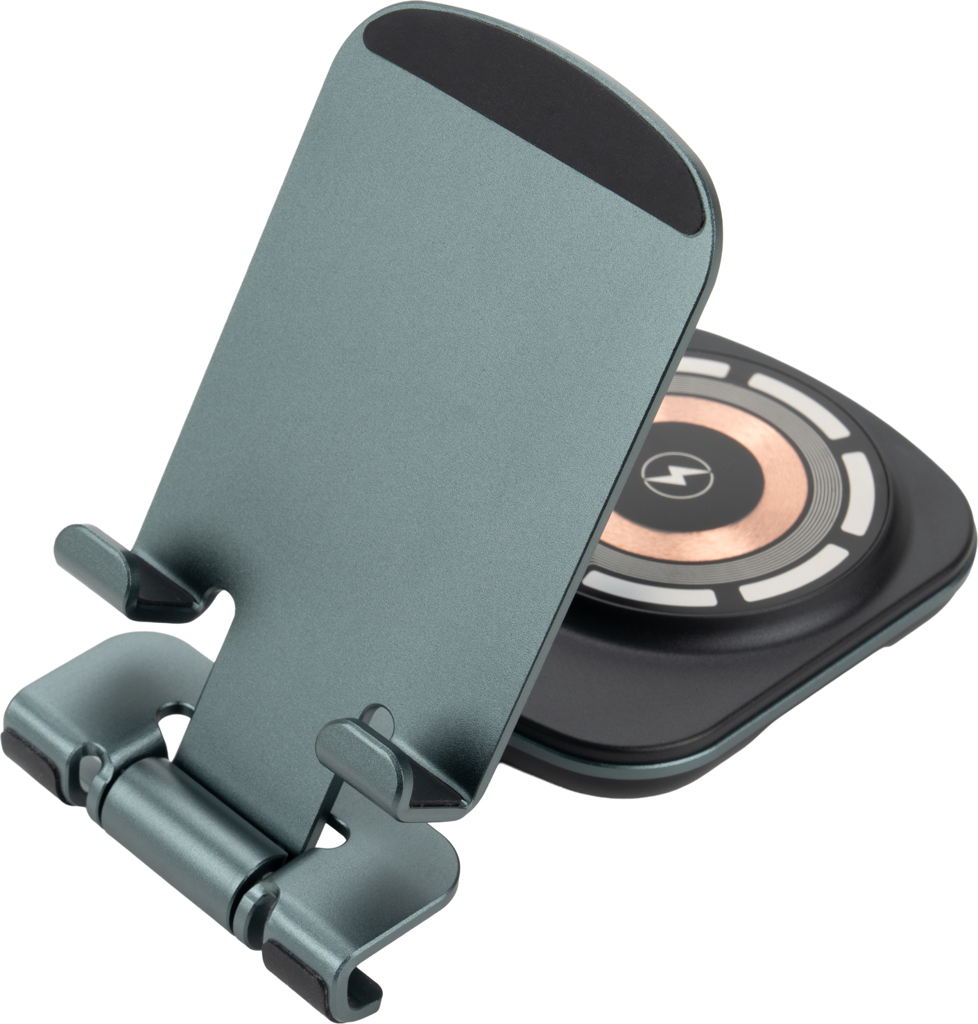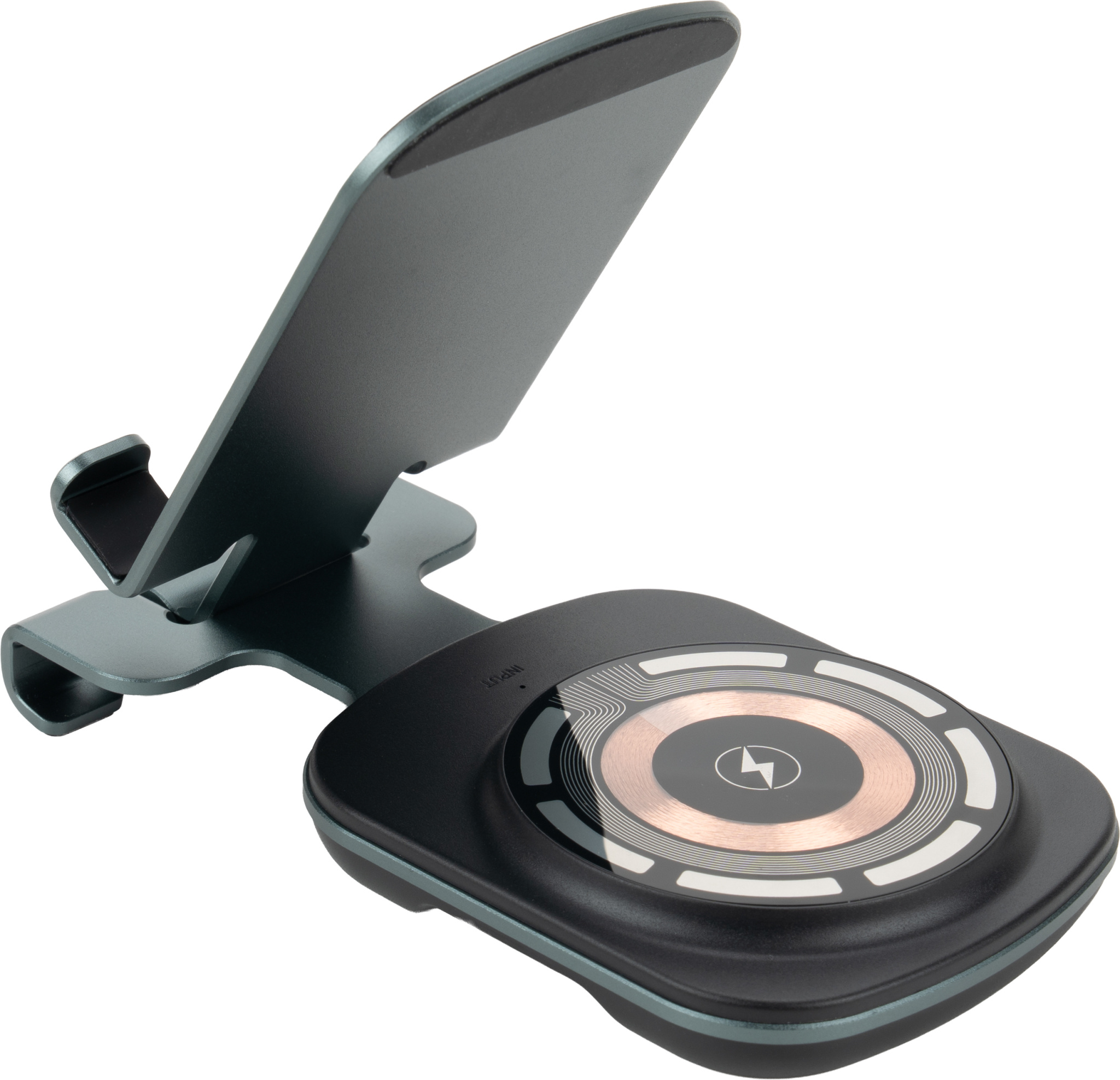 A universal wireless charger that also functions as a practical phone stand. The device is compatible with Apple products such as the iPhone, AirPods, and Apple Watch. It offers a wide range of power outputs (15W, 10W, 7.5W, 5W), adapting to the needs of the device being charged, and is powered by a modern Type-C interface (input: 5V/9V/12V – 2A max.). The construction is made of a durable combination of aluminum alloy, PC, and ABS, which ensures durability and an elegant appearance. The set includes the charger, a one-meter Type-C fast charging cable, and a neutral gift box with dimensions of 7,2 × 2,2 × 17 cm.