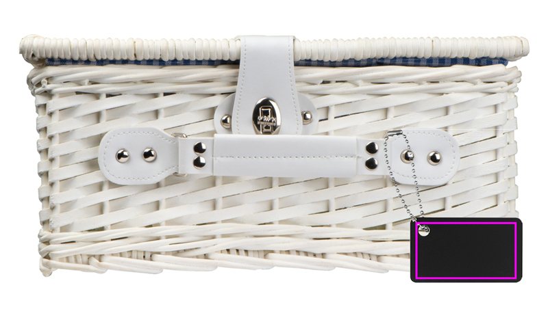 Mini wicker picnic basket for two. With ceramic plates and cups, stainless steel cutlery, salt and pepper shaker. Your logo will be engraved or digitally printed on an aluminium label attached to the basket.