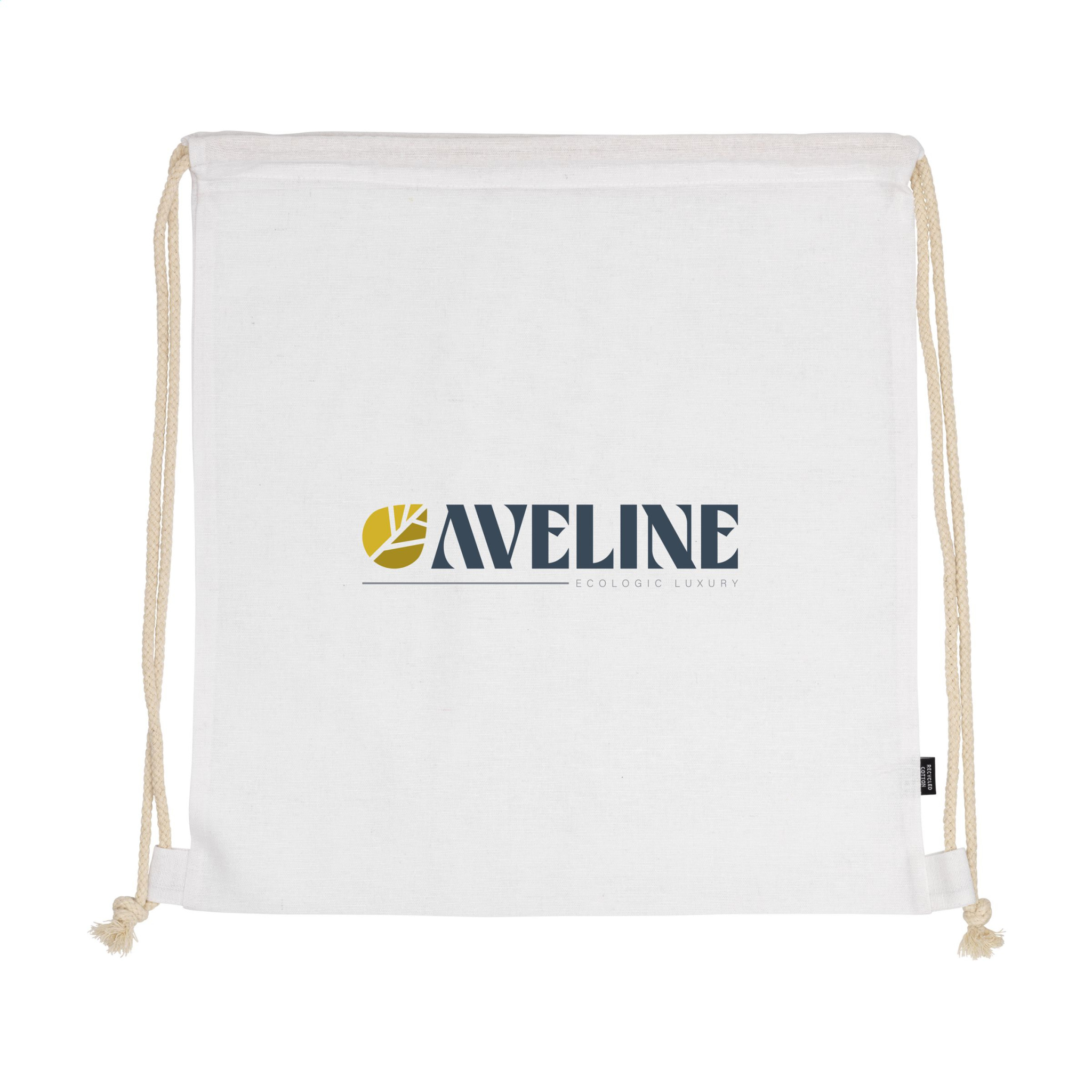WoW! Drawstring backpack made from 80% recycled cotton and 20% recycled polyester (150 g/m²). GRS-certified. Total recycled material: 100%. Capacity approx. 7 litres.
