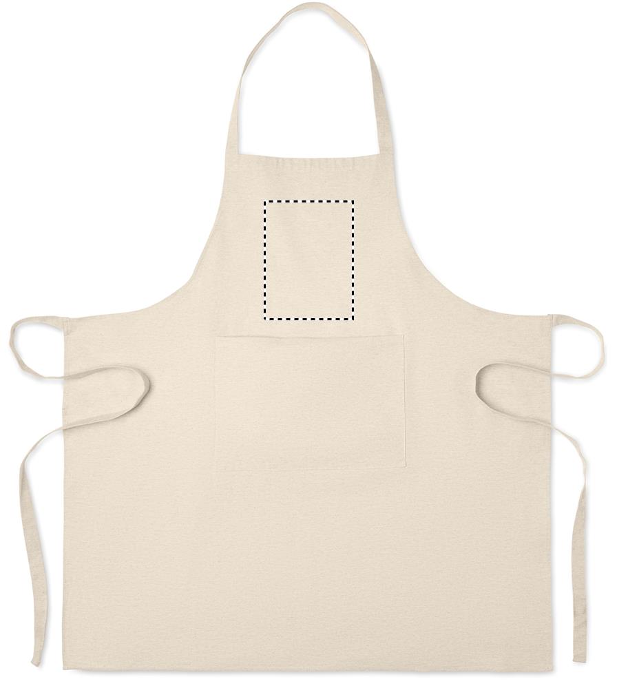 Adjustable kitchen apron with 1 front pocket in 220 gr/m² recycled cotton. 80% recycled cotton, 20% regular cotton.