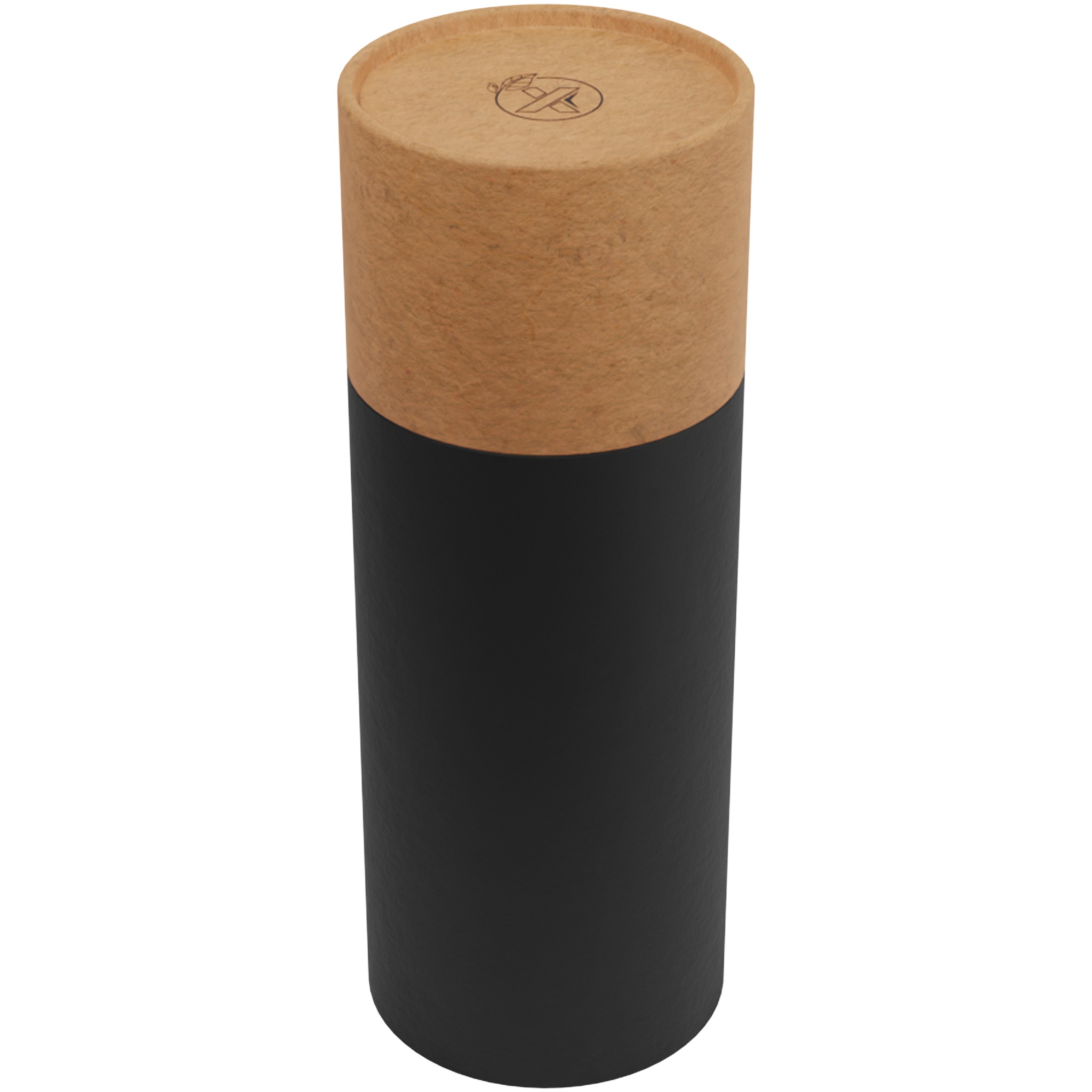 Double-walled vacuum insulated stainless steel and bamboo bottle with a temperature sensor on top of the lid, which displays the temperature of the drink inside the bottle (degrees Celsius). Keeps drinks hot for 8 hours or cold for 12 hours. Comes with a tea filter. Capacity: 500 ml. Delivered in a gift box.
