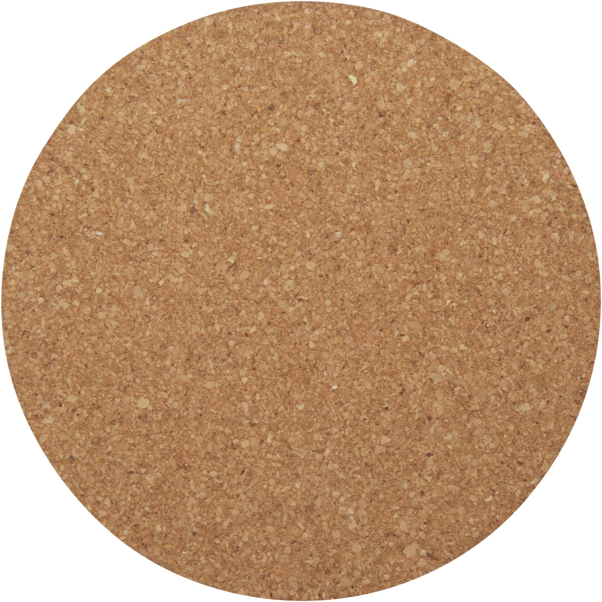 Round coaster made of cork sourced from more sustainable and socially responsible sources. Size: 10 x 0.5 cm.