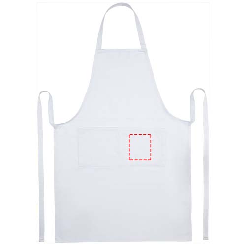 The Shara apron is made of 240 g/m2 70% recycled cotton and 30% recycled polyester making it thick and sturdy, and comfortable to wear. It features 2 adjacent pockets (each 22 x 20 cm), and a 1 metre tie-back closure. The apron incorporates Cyclo® recycled fibres where they use pre-sorted waste that determines the colour of the yarn. These fibres do not only reduce the demand for virgin resources but also exhibit a commitment to a circular life, embodying the essence of reducing waste and promoting a closed-loop system. Each apron also comes with an Aware™ tracer. This innovative feature allows users to trace the origins and journey of their item through a QR code, enhancing transparency in the supply chain and fostering a stronger connection between the product and its production process.