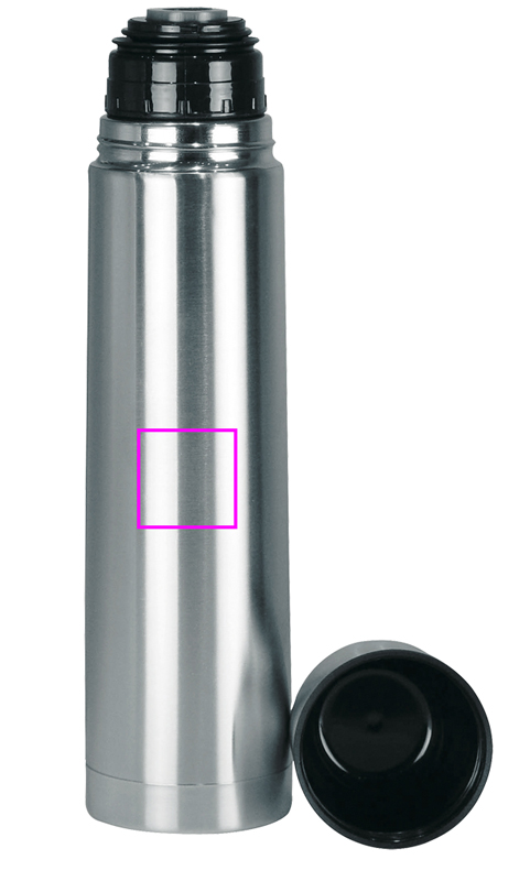 The huge one! This isolating flask is just the right size - its 1l capacity is ideal for journeys with a couple of people. A double wall stainless steel isolating flask with snap closure and drinking cup. The ideal present on which your logo will be laser engraved on the flask. Each flask is packed in a single cardboard box.