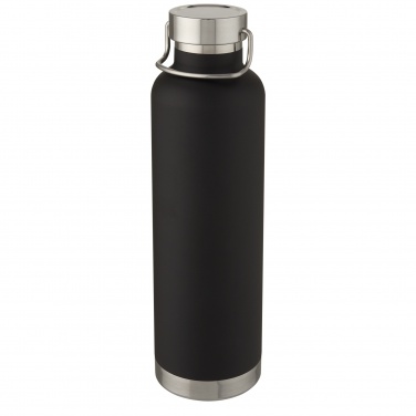 Large double-walled water bottle with 18/8 stainless steel vacuum construction and copper insulation that keeps drinks hot or cold for several hours. The construction also prevents condensation on the outside of the bottle, and the on-trend powder coating makes it extra durable. Stainless steel screw-on leakproof lid with durable stainless steel hand loop. Wide opening for easy filling, pouring and cleaning. BPA-free, tested and approved under German Food Safe Legislation (LFGB). Tested and approved for phthalates content according to REACH regulations. Perfect for ice cubes. Volume capacity is 1 L. Hand wash recommended. Presented in a recycled cardboard gift box.