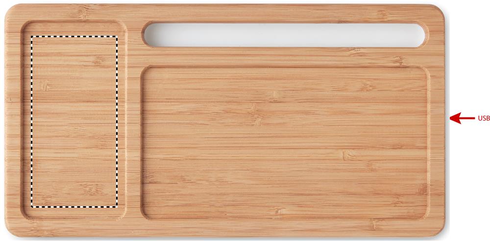 Wireless charger storage box with bamboo top, USB hub and smartphone stand/holder. USB output DC5V/1A (5W). Wireless output: DC5V/1A. Compatible latest androids, iPhone® 8, X and newer. Including type-C cable. Bamboo is a natural product, there may be slight variations in colour and size per item, which can affect the final decoration outcome.