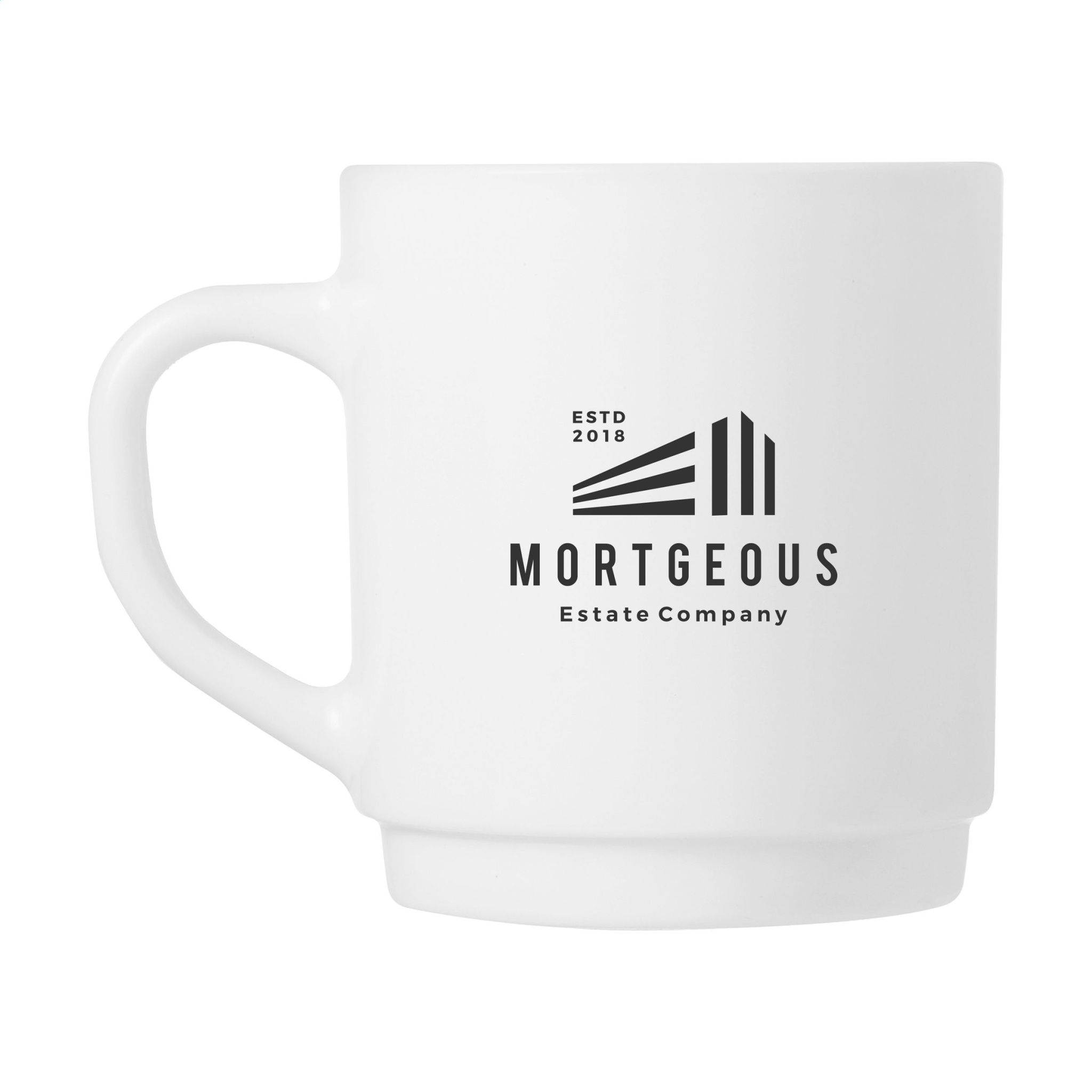 Timeless, stackable mug made from Zenix. Zenix is a very strong material: a type of opal with the best properties of glass and porcelain combined. This timeless mug with generous handle is resistant to bumps and scratches. Capacity 290 ml. Made in Europe.