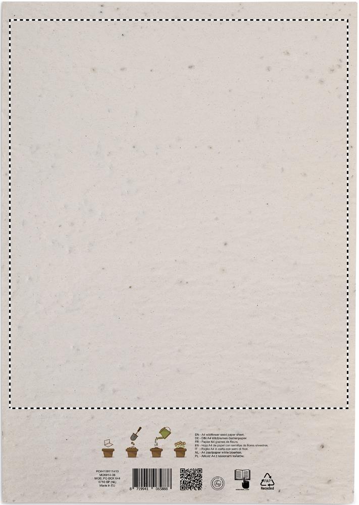 Metslilleseemnetest taaskasutatud paberileht A4 formaadis (80 gr/m²). Valmistatud EL-is.