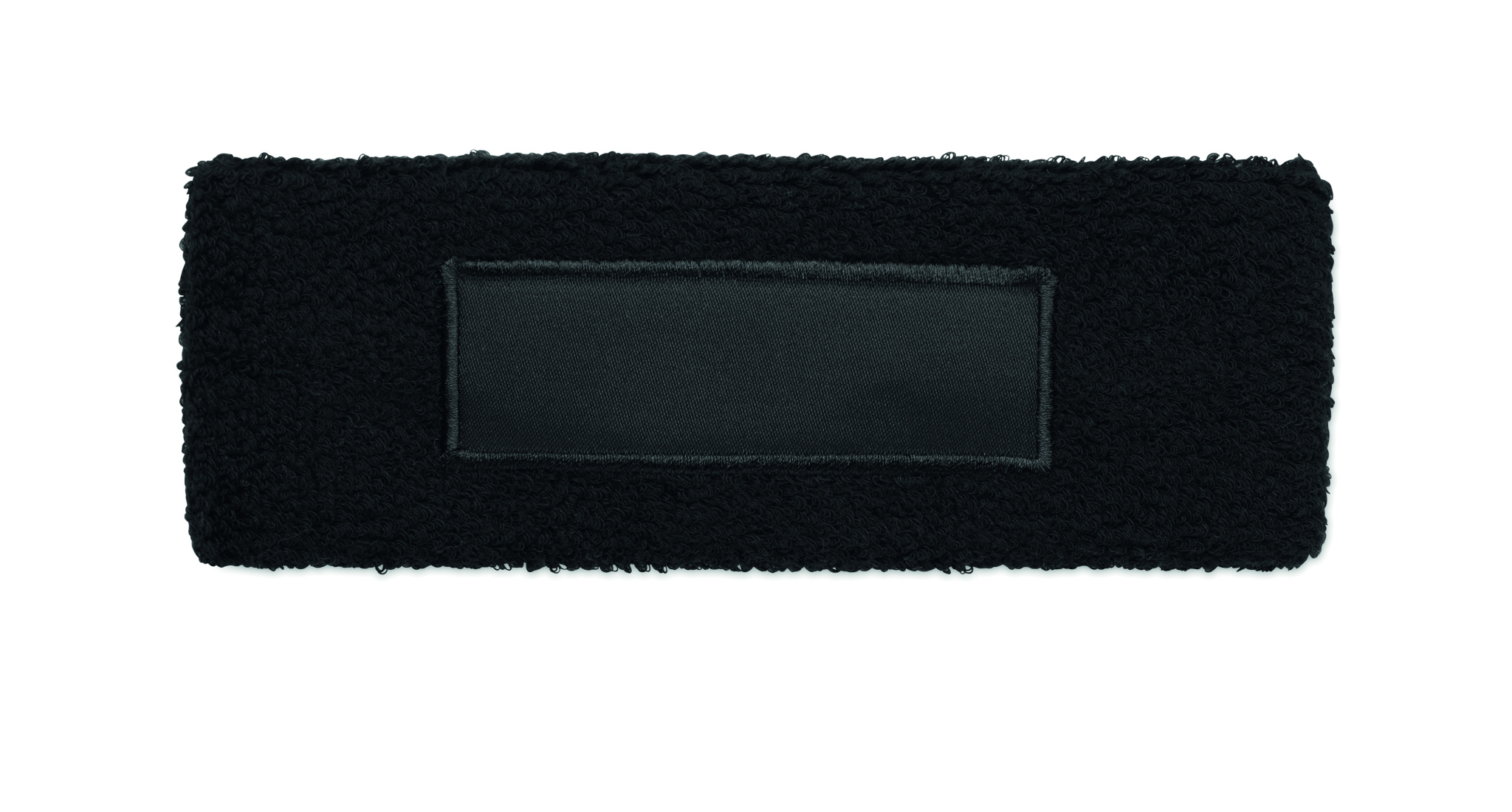 Must polüpuuvillast (79%puuvill/13% elastaan/8%polüester) peapael puuvillase embleemiga trüki jaoks.