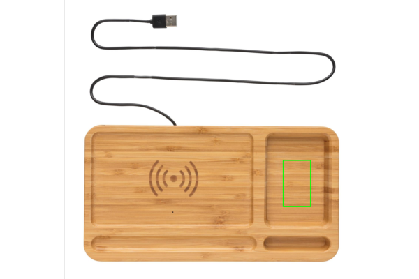 Logotrade ärikingi foto: Bambusest lauaorganisaator 5W juhtmevaba laadija