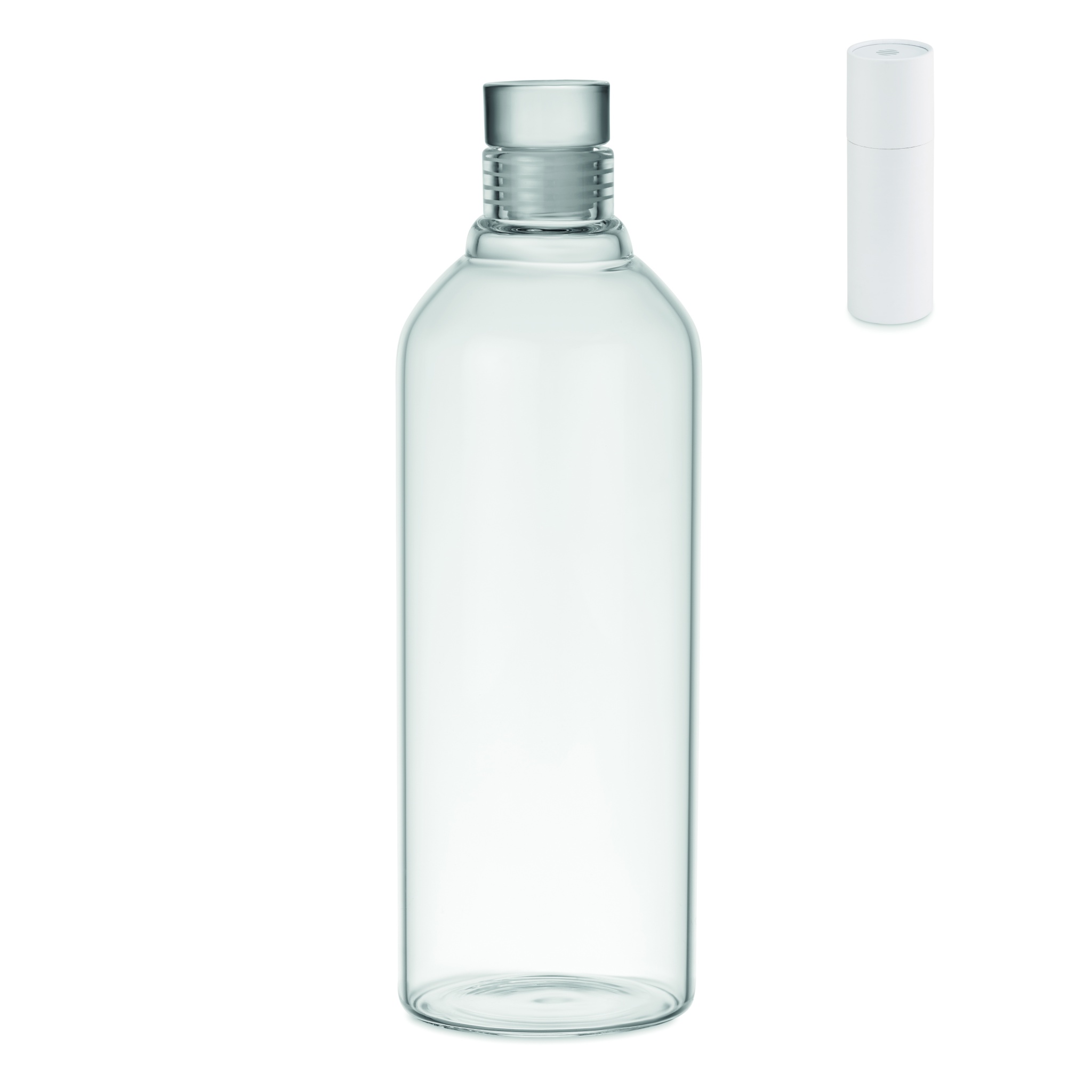 Suur lekkevaba klaaskorgiga borosilikaatklaasist pudel. Esitatakse torukarbis. Mahutavus: 1L.