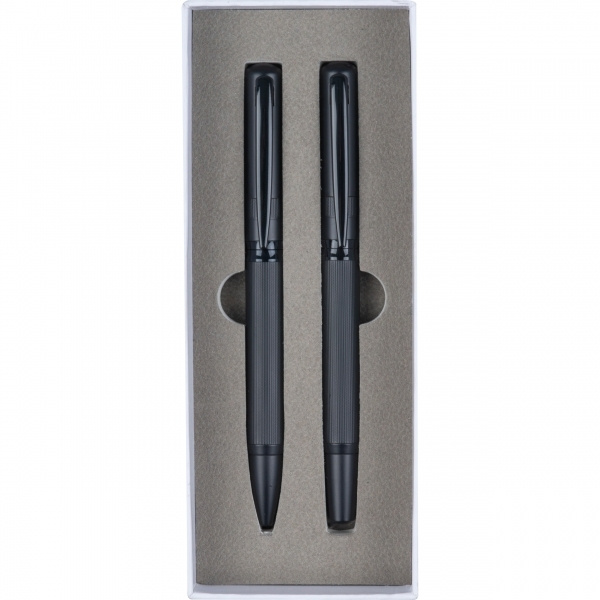 Kvaliteetne kirjutuskomplekt, mis koosneb tindipliiatsist ja pastapliiatsist. Mõlemad on elegantse disaini ja sinise tindiga. Täiustatud MoLu logoga, mattmust. Ideaalne eksklusiivseks kingituseks!