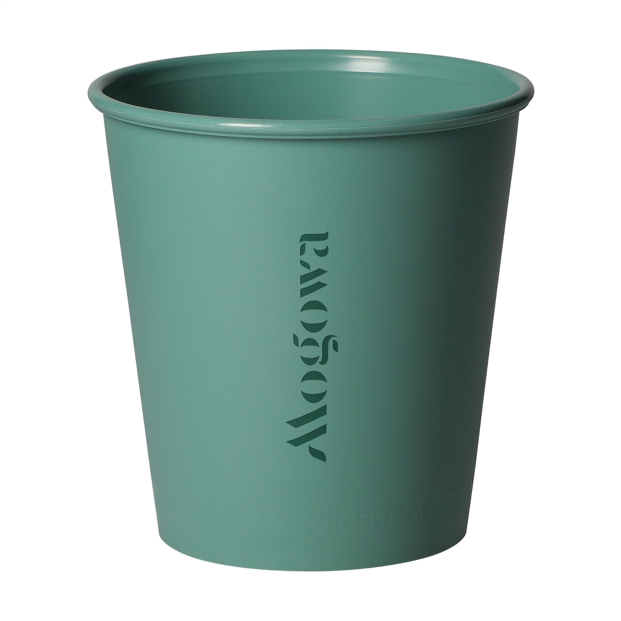 Taaskasutatavatest allikatest pärit biomaterjalist valmistatud korduvkasutatav joogitops. See virnastatav tass on hea alternatiiv ühekordsele kohvitassile. Sobib peaaegu iga kohvimasina alla. 100% taaskasutatav ja BPA-vaba. See toode on nõudepesumasinas pestav. Jälje säilimiseks on soovitatav käsitsi pesta. Mahutavus 200 ml. Valmistatud Saksamaal.
