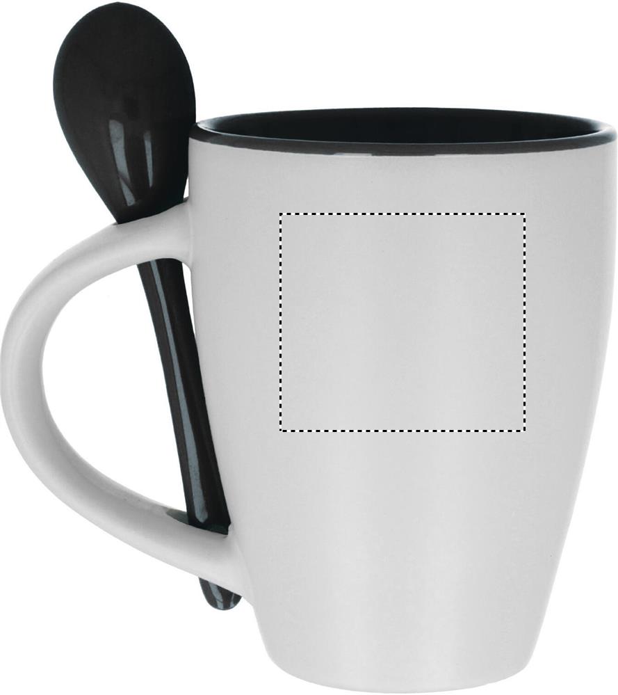 Kahevärviline keraamiline kohvikruus mahuga 250 ml koos värvisobituslusikaga. Üksikkarp 11,5x10,5x9,3cm.