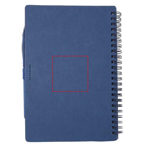 Korduvkasutatav kivipaberist pehmekaaneline märkmik ja pastakakomplekt. Märkmikul on papist kaas, ümarad nurgad ja 32 lehte 120 g/m² joonelist paberit. Kivipaber on 100% puuvaba ja tootmisprotsess kasutab vähem energiat võrreldes taaskasutatud või uue paberimassi paberiga. Tagaküljel on tasku musta puhastuslapi hoidmiseks (kaasas). Kustutav taaskasutatud plastikust pliiats läbipaistva silindri, valge kustutuskummiga peal ja ühevärvilise klipiga. Tindi värv: must. Kirjutamise pikkus: 250 meetrit. Otsa suurus: 0,7 mm.