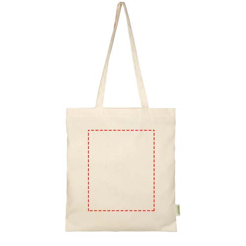 100% OCS-sertifitseeritud 100 g/m² India päritolu orgaanilisest puuvillast valmistatud kandekott, millel on suur avatud põhiosa, mis pakub palju ruumi kõigi oluliste asjade kaasaskandmiseks. 32 cm pikkused käepidemed muudavad selle kaasaskandmise mugavaks. Kandevõime kuni 5 kg. Mahutavus: 7 liitrit.