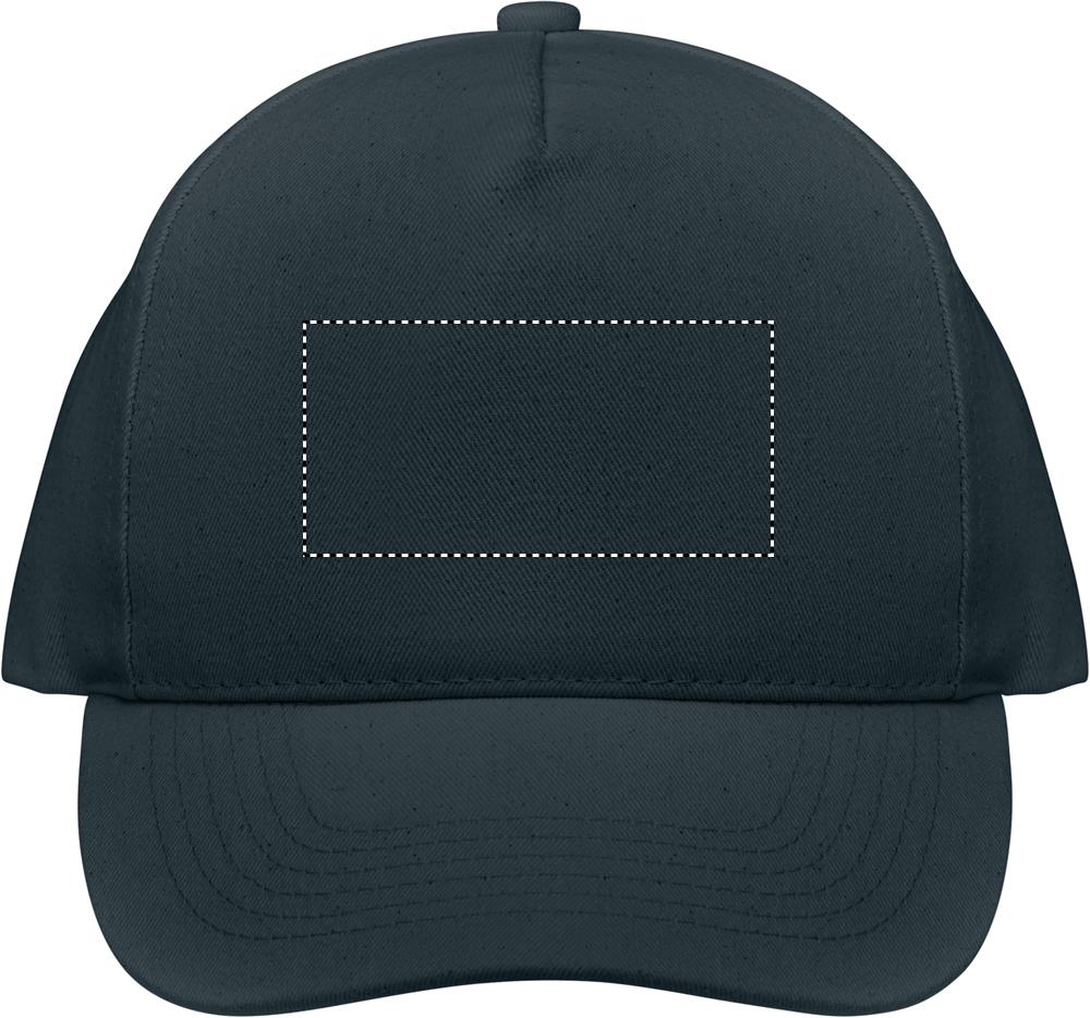 5-paneeliline pesapallimüts 250 gr/m² orgaanilisest harjatud puuvillast, metallist reguleeritava rihmaga seljapandlaga.